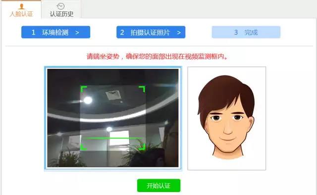 在用戶中心,點擊“進入資格認(rèn)證”,開始人臉認(rèn)證。請選擇光線充足的環(huán)境,光線不能過亮、過暗,背景最好是白色和灰色,不能過于復(fù)雜的背景,保持面部在綠色檢測框內(nèi),為更好的完成認(rèn)證,請不要出現(xiàn)其他人像進入視頻區(qū)域,準(zhǔn)備好后,點擊下方的“開始認(rèn)證”按鈕。