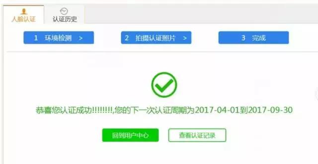 在規(guī)定時間內(nèi)完成了人臉認(rèn)證,并且提示認(rèn)證成功,即代表本次認(rèn)證已經(jīng)通過了,另外系統(tǒng)還會告知您的下一個認(rèn)證時間,請在此時間段內(nèi)完成下次認(rèn)證。